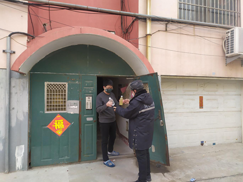 因疫情防控需要,對(duì)小區(qū)進(jìn)行嚴(yán)格管理,涉市外人員因居家隔離,無(wú)法外出,不能購(gòu)置酒精及84消毒液等消毒用品。社區(qū)便統(tǒng)一購(gòu)置酒精及消毒液,根據(jù)居民提交申請(qǐng)的情況,由各轄區(qū)網(wǎng)格員將物資放置樓道口,居民自行領(lǐng)取。