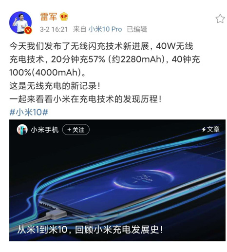 作為國內(nèi)率先應(yīng)用無線充電的手機廠商,過去兩年正是小米將無線充電普及到了消費者的日常生活中,充電速率從10瓦、20瓦、30瓦到40瓦,小米在無線充電技術(shù)領(lǐng)域的卓越表現(xiàn)令人矚目。