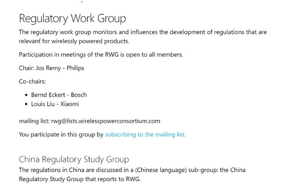 在剛結(jié)束的無線充電標準聯(lián)盟(WPC)2020年第1次全會上,來自小米集團技術(shù)委員會標準與新技術(shù)部專家劉洋成功當(dāng)選聯(lián)盟RWG(Regulation Work Group)聯(lián)席主席,RWG組共設(shè)一位主席和兩位聯(lián)席主席,小米是中國手機公司里唯一有擔(dān)任主席職位的公司。