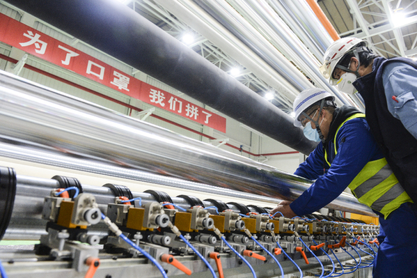 “國(guó)家需要什么就生產(chǎn)什么,人民期待什么就奉獻(xiàn)什么。一切為了國(guó)家的需要和人民的期待。這是中國(guó)石化集團(tuán)公司黨組在疫情防控阻擊戰(zhàn)中確定的原則?!眳未簌i告訴記者,口罩作為抗擊疫情最重要的防護(hù)用品,隨著疫情突發(fā)需求量大增。特別是用以生產(chǎn)口罩的熔噴布,國(guó)內(nèi)產(chǎn)能原本不足,新增產(chǎn)能周期長(zhǎng)、投資大,趕不上下游口罩機(jī)生產(chǎn)線的增加,一時(shí)間熔噴布價(jià)格飛漲且供不應(yīng)求,成為產(chǎn)業(yè)鏈條的“瓶頸”。