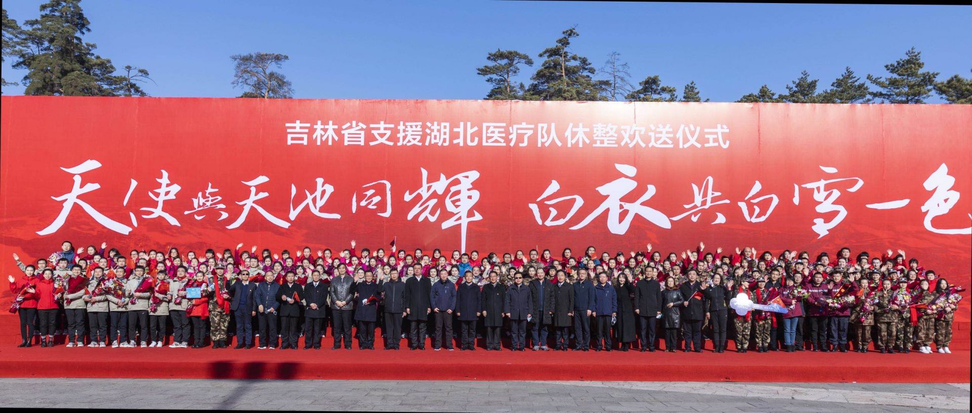 ????4月5日上午,吉林省首批援鄂返吉醫(yī)療隊(duì)結(jié)束集中休整返程歡送儀式在長(zhǎng)白山池北區(qū)舉行。吉林省支援湖北醫(yī)療隊(duì)首批返程的145名隊(duì)員在長(zhǎng)白山14天的休整期正式結(jié)束,分別返程長(zhǎng)春、通化、白山、松原、公主嶺等地。