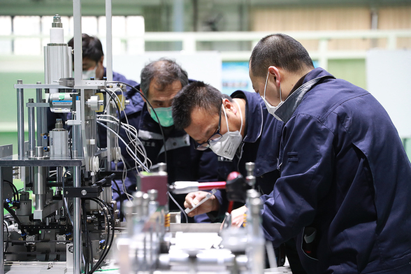 圖為裝配人員聚精會神調(diào)試設(shè)備。(中國航空制造技術(shù)研究院 供圖)