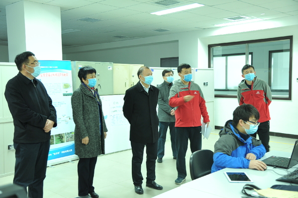 高紅衛(wèi)(左三)現(xiàn)場調研重大項目疫情防控和復工復產(chǎn)情況。(航天科工集團提供)