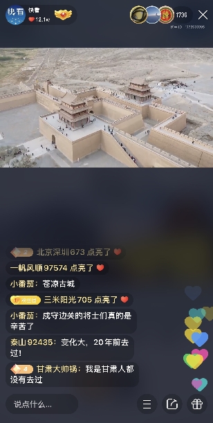 “出嘉峪關(guān)向西,便是絲綢古道。這座建成600多年的‘天下第一雄關(guān)’保存完好,是歷史人文無聲的見證?!?月5日上午,伴隨著“五一”小長假即將結(jié)束,新華社“快看”直播地標(biāo)首季活動也順利收官。五天的直播帶領(lǐng)全國網(wǎng)友“云游”北京前門、上海外灘、廣州塔、武漢黃鶴樓、天津古文化街,親歷上?!盁o界美術(shù)館”的奇幻和貴州大興東的清涼,“云”品嘗順德美食,在“大漠孤煙直”的嘉峪關(guān)結(jié)束旅程,既感受了歷史傳承的雄渾瑰麗,又品味了現(xiàn)代藝術(shù)與游樂設(shè)施的多姿多彩,有吃有玩,歡樂無限。數(shù)百萬網(wǎng)友在線觀看了此次直播系列活動,數(shù)十萬人點(diǎn)贊稱“快看一播,馬上就火”“有機(jī)會一定要親自去”“看得口水都快流下來了”“不愧是頂級直播號,這個五一有意義”。