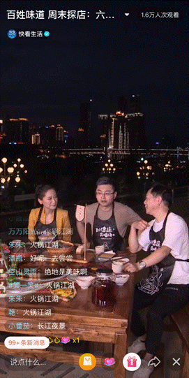 身處著名的重慶南濱路,可以看到長(zhǎng)江索道飛躍南北,江中輪船往來穿梭。直播一開始,身為東道主的六神磊磊便為初來重慶的主播介紹了地理方位和標(biāo)志建筑:渝中、南岸、東水門長(zhǎng)江大橋、長(zhǎng)江索道、來福士廣場(chǎng)……江風(fēng)徐徐,景色迷人,火鍋沸騰,美食登場(chǎng)。