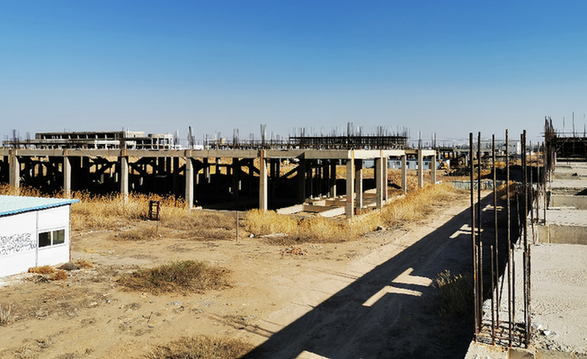 不遠(yuǎn)處,體量巨大的“巴彥淖爾市長泰汽貿(mào)城”爛尾建筑也顯得支離破碎。