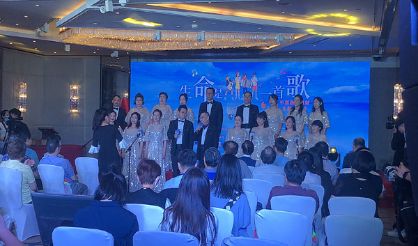 晚會(huì)現(xiàn)場(chǎng),中國(guó)器官移植發(fā)展基金會(huì)工作人員合唱《You raise me up》《相逢是首歌》兩首歌,弘揚(yáng)公民志愿捐獻(xiàn)大愛(ài)精神。(圖片來(lái)源:中國(guó)器官移植發(fā)展基金會(huì))