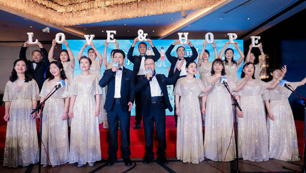 晚會(huì)現(xiàn)場(chǎng)基金會(huì)全體人員一起合唱