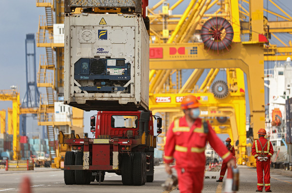 一輛貨車在大連港大連集裝箱碼頭有限公司港口裝載集裝箱。今年以來,遼港集團(tuán)大連港以“完善航線布局,提高吞吐量”為抓手,大力推進(jìn)集裝箱內(nèi)外貿(mào)航線及多品種貨源的開發(fā),多措并舉拓展市場。記者 姚劍鋒 攝