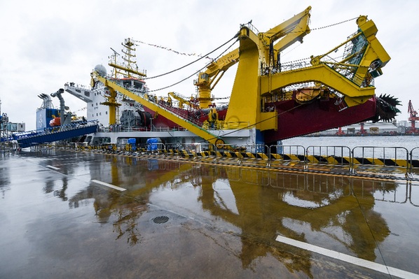 我國自主研發(fā)的重型自航絞吸船“天鯤號”亮相2020中國海洋經(jīng)濟博覽會。記者 毛思倩 攝