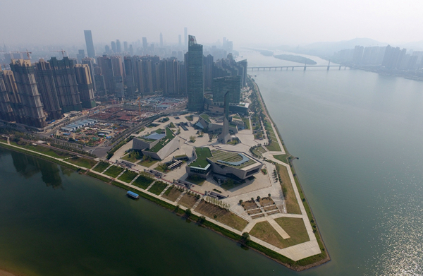 俯瞰湖南長(zhǎng)沙湘江邊北辰三角洲沿岸風(fēng)光帶。記者 龍弘濤 攝