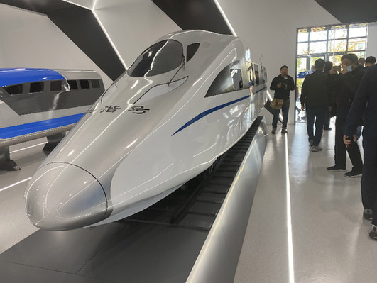 常州軌道交通產(chǎn)業(yè)展示館里的和諧號(hào)機(jī)車模型。記者 程子龍 攝