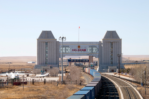 一列中歐班列經(jīng)過滿洲里國門。果乃輪 攝