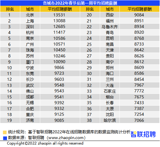 數(shù)據(jù)顯示,職場人對(duì)2022年經(jīng)濟(jì)形勢抱有樂觀期待。節(jié)后首周求職行為活躍,平均招聘薪酬10088元/月,其中北上深杭居前四。金融、IT互聯(lián)網(wǎng)依然是高薪行業(yè),人工智能崗位薪資21985元/月,新能源汽車、半導(dǎo)體、生物醫(yī)藥新晉高薪職業(yè)榜單。