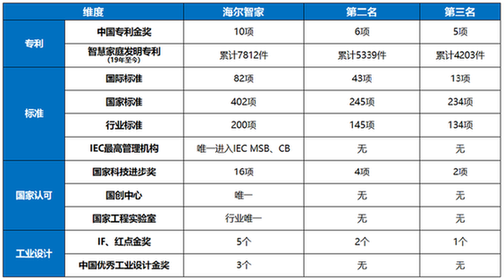 單是在產(chǎn)品科技方面,海爾智家目前就有178項原創(chuàng)科技被行業(yè)跟進。在國家級獎項方面,海爾智家累計獲得了16項國家科技進步獎,行業(yè)最多,拿下10項中國專利金獎,同樣也是行業(yè)最多。在國際方面,海爾智家累計主導(dǎo)和參與國際標準數(shù)量達到行業(yè)最多的82項,也是全球唯一同時進入IEC CB和IEC MSB兩大最高管理機構(gòu)的企業(yè)。如今的海爾智家,在專利、標準、國家認可、工業(yè)設(shè)計等領(lǐng)域均已做到行業(yè)第一。