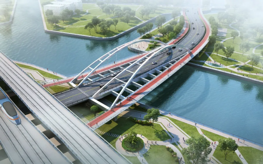 兩條路均新建跨吳淞江橋梁,同步實(shí)施排水、交通標(biāo)志標(biāo)線、信號(hào)燈、照明、綠化等附屬工程。