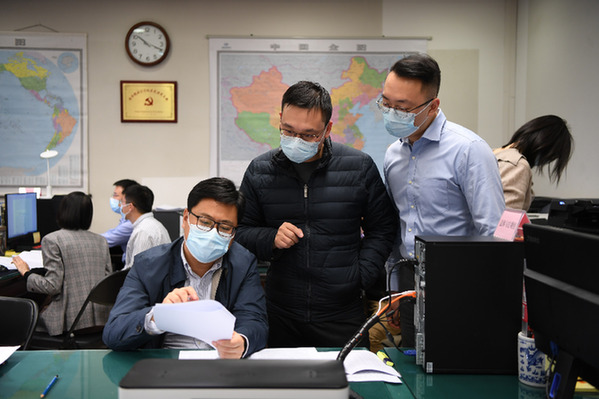 3月5日,國務(wù)院辦公廳工作專班工作人員在認(rèn)真工作。