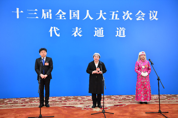 3月5日,第十三屆全國(guó)人民代表大會(huì)第五次會(huì)議舉行首場(chǎng)“代表通道”采訪活動(dòng)。這是全國(guó)人大代表通過網(wǎng)絡(luò)視頻方式接受采訪。新華社記者 李鑫 攝