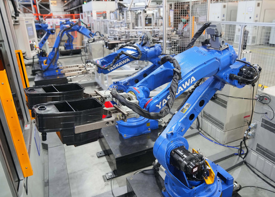 河北廊坊經(jīng)濟技術(shù)開發(fā)區(qū)一家汽車配件企業(yè)的機器人在工作中。(資料照片)