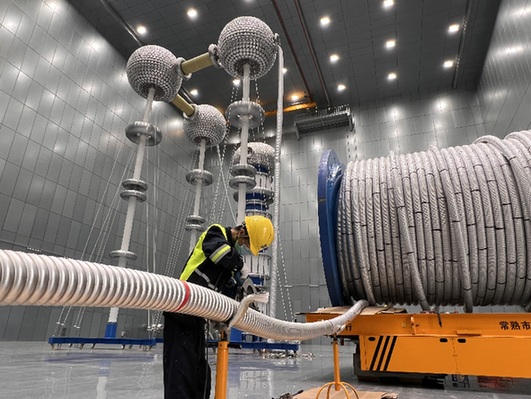 圖為東方電纜工作人員正在做產(chǎn)品檢測試驗(yàn)。資料照片