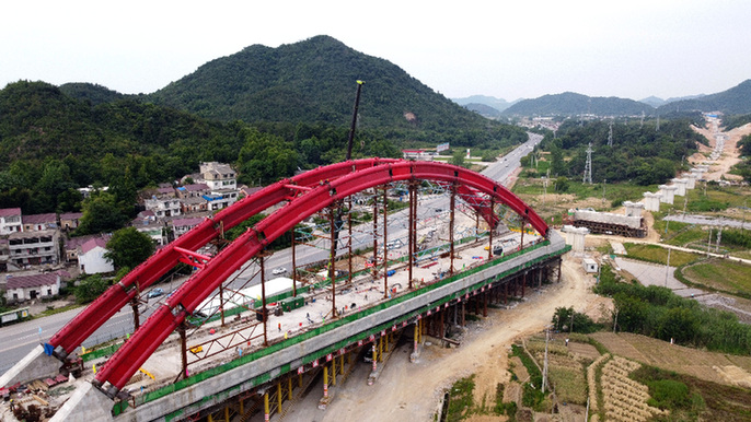 當(dāng)日,由皖贛鐵路安徽公司承建、中鐵十一局施工的池(州)黃(山)鐵路白沙鋪特大橋128米系桿拱順利合龍,為后續(xù)工程施工提供了保障。池黃鐵路全長約125公里,設(shè)計(jì)時(shí)速350公里,是武(漢)杭(州)快速鐵路通道的重要組成部分。