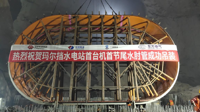 2022年5月25日10:58時(shí),國(guó)家能源集團(tuán)青海瑪爾擋水電站機(jī)電安裝工程首臺(tái)大機(jī)(5#機(jī)組)尾水肘管首段(15、14管節(jié))管節(jié)整體吊裝平穩(wěn)落至5#機(jī)坑,順利實(shí)現(xiàn)了電站機(jī)電埋件期間首個(gè)重大節(jié)點(diǎn)目標(biāo),標(biāo)志著瑪爾擋水電工程正式進(jìn)入水輪發(fā)電機(jī)組埋件施工階段。