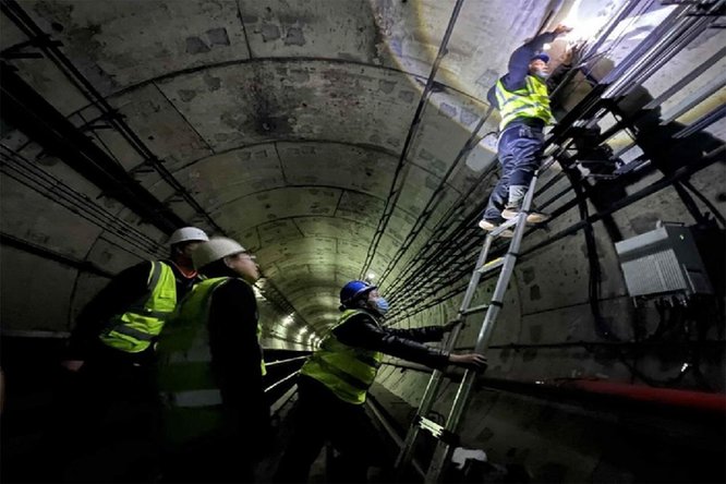 圖為技術(shù)人員夜間進(jìn)入武漢地鐵建設(shè)5G網(wǎng)絡(luò)。許國(guó)勝 攝
