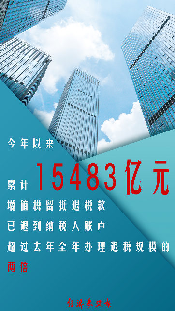 一是4月1日—6月9日,已有14250億元退稅款退到納稅人賬上,再加上一季度繼續(xù)實施此前出臺的留抵退稅老政策,已累計有15483億元退稅款退到納稅人賬戶,超過去年全年辦理退稅規(guī)模的兩倍。
