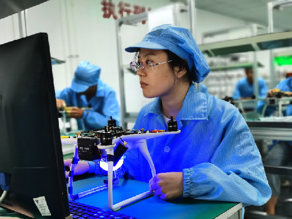 一飛智控(天津)科技有限公司工作人員正在組裝調試無人機。