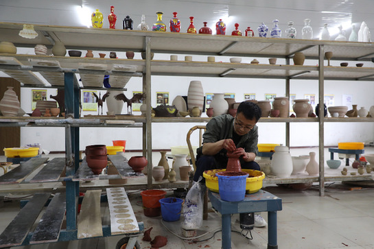 白銀杰就是其中的一位。白銀杰過(guò)去以種地為生,是普通農(nóng)民。從小喜歡搞文藝創(chuàng)作的他剪過(guò)窗花、寫(xiě)過(guò)春聯(lián)、做過(guò)木雕,有一定的技藝基礎(chǔ)。在參加依安縣陶藝培訓(xùn)后,白銀杰成為當(dāng)?shù)匦∮忻麣獾摹疤账噹煛??!懊總€(gè)月能有5000多元的收入,比種地強(qiáng)多了?!卑足y杰說(shuō)。
