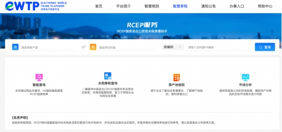 據(jù)了解到,屆時(shí),企業(yè)只需要登陸eWTP官網(wǎng),通過“智慧享稅”欄目即可查詢輸入原產(chǎn)地、出口國和出口商品的HS編碼,就會顯示RCEP和其他貿(mào)易協(xié)定對于該商品的稅率規(guī)定,系統(tǒng)將會推薦最優(yōu)惠稅率;企業(yè)還可查詢相關(guān)原產(chǎn)地規(guī)則,便于企業(yè)了解協(xié)定享惠要求。
