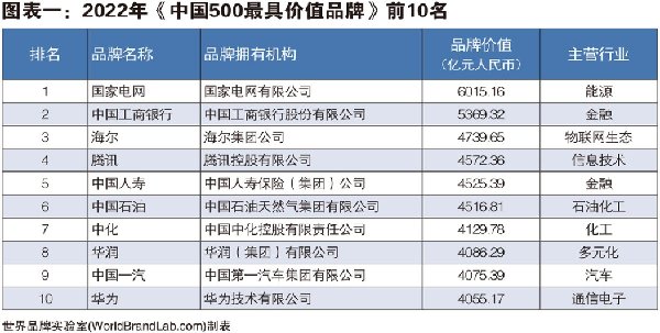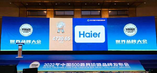 7月26日,由世界品牌實(shí)驗(yàn)室(World Brand Lab)主辦的(第十九屆)“世界品牌大會(huì)”在北京舉行,會(huì)上發(fā)布了2022年《中國500最具價(jià)值品牌》分析報(bào)告。在這份基于財(cái)務(wù)數(shù)據(jù)、品牌強(qiáng)度和消費(fèi)者行為分析的年度報(bào)告中,國家電網(wǎng)、中國工商銀行、海爾成為中國最具價(jià)值的前三大品牌。其中,海爾連續(xù)十九年登上這一榜單,蟬聯(lián)中國品牌前三,品牌價(jià)值高達(dá)4739.65億元。