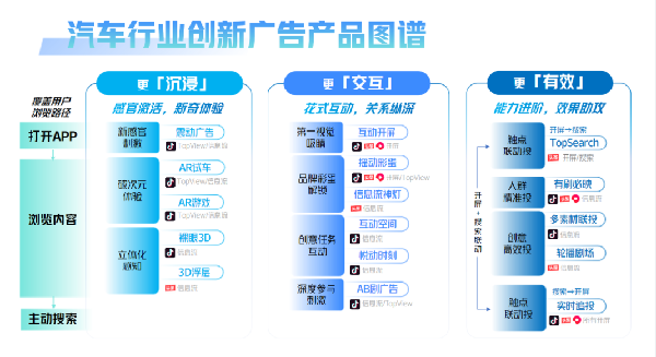 近日,巨量引擎推出適用于汽車行業(yè)的《創(chuàng)新廣告營銷攻略》,從體驗(yàn)、互動(dòng)、效果3個(gè)維度,為汽車廣告的創(chuàng)意玩法帶來新思路。