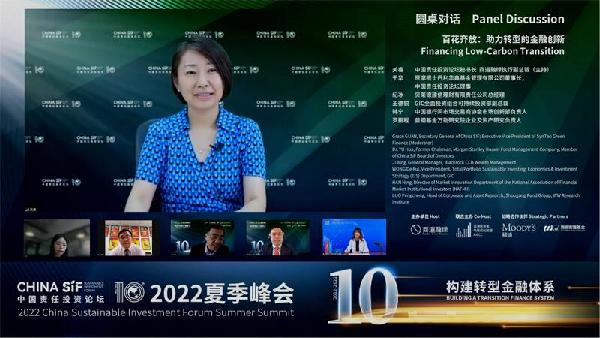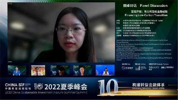 中國責(zé)任投資論壇秘書長、商道融綠執(zhí)行副總裁關(guān)睿主持討論了“百花齊放:助力轉(zhuǎn)型的金融創(chuàng)新”主題圓桌對話環(huán)節(jié),來自公募基金、理財(cái)公司、主權(quán)基金、交易商協(xié)會(huì),以及產(chǎn)業(yè)基金的各位代表就轉(zhuǎn)型金融的內(nèi)涵及發(fā)展轉(zhuǎn)型金融的機(jī)遇與挑戰(zhàn)進(jìn)行了對話。