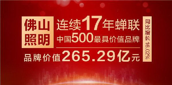 聚合品牌力量,提升品牌價(jià)值,再次入選“中國(guó)500最具價(jià)值品牌”榜單,是佛山照明品牌提升的又一階段性成果,佛山照明將以這份榮譽(yù)為前進(jìn)動(dòng)力,在新的征程上不斷創(chuàng)造新的業(yè)績(jī)、鑄就新的輝煌,為推動(dòng)新時(shí)代中國(guó)品牌建設(shè)作出貢獻(xiàn)。