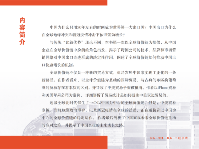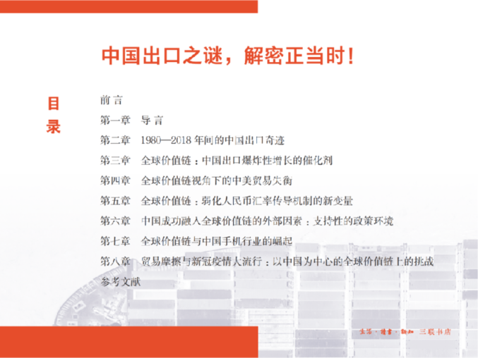 中國為什么只用30年左右的時間成為世界第一大出口國?中國出口為什么在全球地緣沖突和新冠疫情沖擊下依舊強勁增長?近日,由生活·讀書·新知三聯(lián)書店出版的《中國出口之謎:解碼“全球價值鏈”》對此進行了一一解答,全面、深刻地解析了中國出口奇跡。該書上市一周已位列當當經(jīng)濟類新書第一名、京東社科類新書總榜第七名。