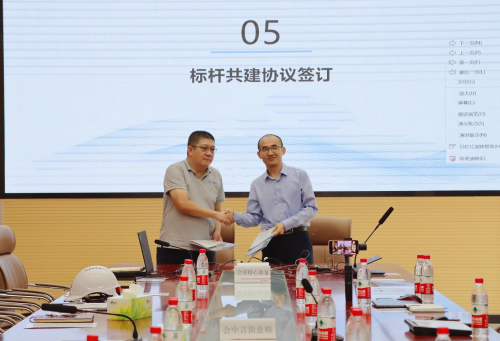 最后,新國(guó)展二期項(xiàng)目經(jīng)理焦勇與廣聯(lián)達(dá)副總裁劉曉棟代表雙方公司正式簽署了共育·標(biāo)桿共建協(xié)議。