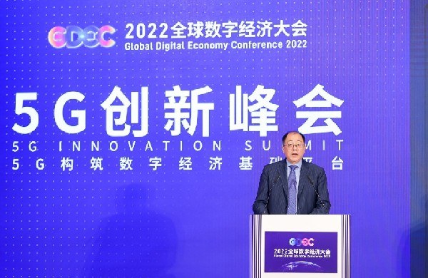 圖為高通公司中國區(qū)董事長孟樸在2022年全球數(shù)字經(jīng)濟(jì)大會(huì)5G創(chuàng)新峰會(huì)上發(fā)表主題演講