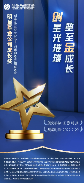 7月29日,《證券時報》主辦的第十七屆中國基金業(yè)明星基金評選結(jié)果揭曉,創(chuàng)金合信基金憑借優(yōu)異的中長期業(yè)績回報和穩(wěn)健快速發(fā)展榮獲“明星基金公司成長獎”。
