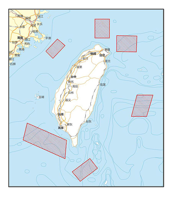 北緯25°15′26″、東經(jīng)120°29′20″,北緯24°50′30″、東經(jīng)120°05′45″,北緯25°04′32″、東經(jīng)119°51′22″,北緯25°28′12″、東經(jīng)120°14′30″四點(diǎn)連線。