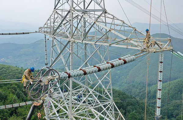 閩粵電力聯(lián)網(wǎng)線路工程日前全線貫通,實(shí)現(xiàn)福建電網(wǎng)與廣東電網(wǎng)物理“牽手”。圖為國網(wǎng)福建省送變電工程有限公司施工人員在閩粵電力聯(lián)網(wǎng)線路工程現(xiàn)場(chǎng)作業(yè)。