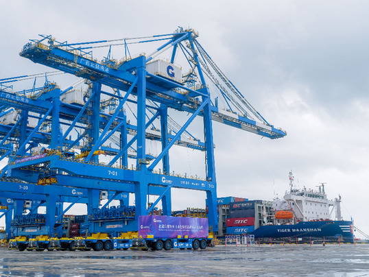 欽州自動化集裝箱碼頭操作人員正在進(jìn)行設(shè)備技術(shù)交流。資料照片