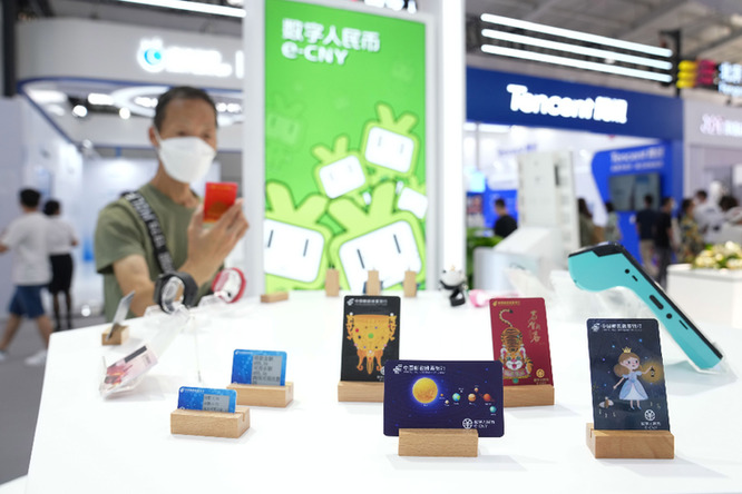 2022年中國國際服務貿(mào)易交易會日前閉幕。作為2022年服貿(mào)會九大專題展之一的金融服務專題展,以“開放融合、綠色未來”為主題,其中數(shù)字人民幣作為金融服務展中的一部分,吸引大量觀眾參觀。新華社記者 鞠煥宗 攝?