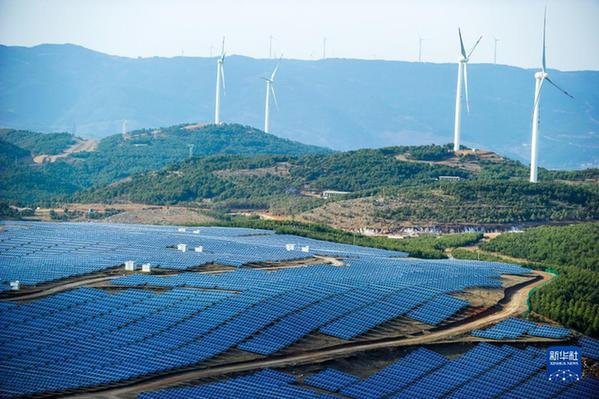 這是貴州省威寧縣平箐光伏電站和大海子風電場(2018年3月13日攝)。 新華社記者 楊文斌 攝