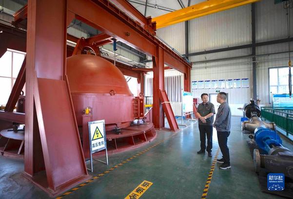 在位于寧夏吳忠市的吳忠儀表有限責(zé)任公司自動(dòng)化產(chǎn)業(yè)園實(shí)驗(yàn)室內(nèi),馬玉山(左)與技術(shù)人員交流(9月12日攝)。 新華社記者 楊植森 攝