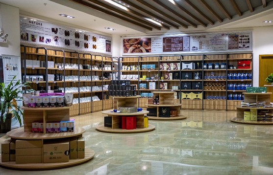 設(shè)立在普洱的云南國際咖啡交易中心內(nèi)展示不同種類的咖啡產(chǎn)品。新華社記者 陳欣波 攝