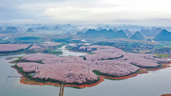 每年春季,貴州省貴安新區(qū)櫻花園內櫻花競相盛開,吸引不少游客前來觀賞。