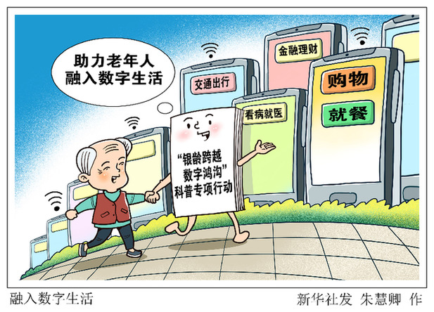 為積極應(yīng)對人口老齡化,中國科協(xié)、中國銀行、中國聯(lián)通日前聯(lián)合印發(fā)方案,共同開展“銀齡跨越數(shù)字鴻溝”科普專項行動,滿足老年人對信息素養(yǎng)、數(shù)字技能和金融知識等方面的需求,切實解決他們在高頻生活場景中智能應(yīng)用的現(xiàn)實困難,助力老年人走進(jìn)數(shù)字時代、享受智慧生活。新華社發(fā) 朱慧卿 作?