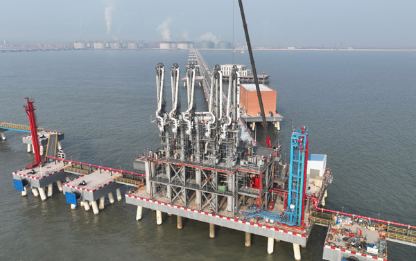 2023年1月4日,工人在唐山市曹妃甸區(qū)新天LNG(液化天然氣)項(xiàng)目接收站碼頭施工(無(wú)人機(jī)照片)。