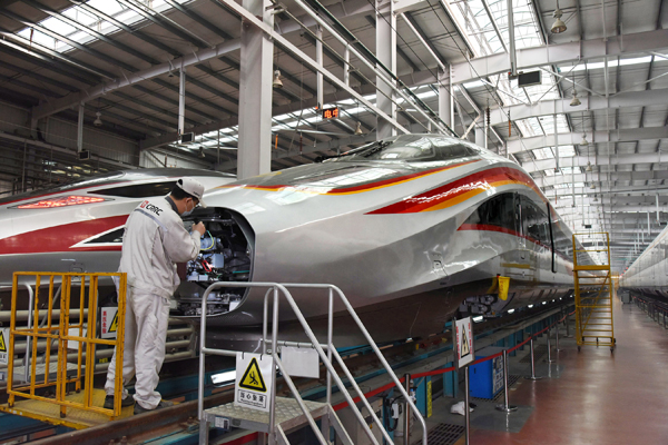 2023年1月4日,一名技術(shù)人員在查看“復(fù)興號(hào)”智能動(dòng)車(chē)組。